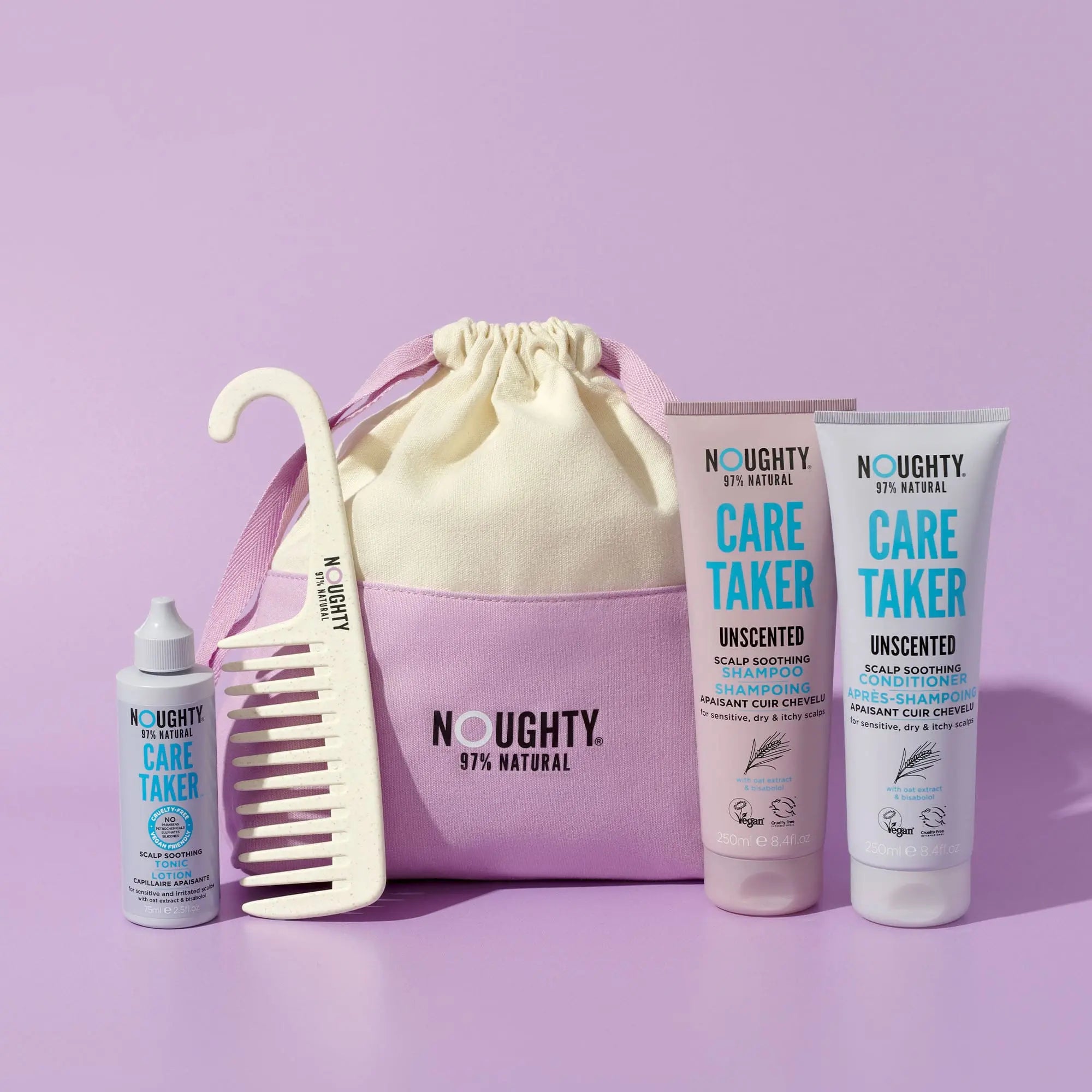 Care Taker Unscented Scalp Soothing Conditioner: Put a small amount of conditioner into palms and rub together to spread evenly. Start application from the mid-lengths to ends and leave on hair for 1-2 minutes before rinsing thoroughly.
